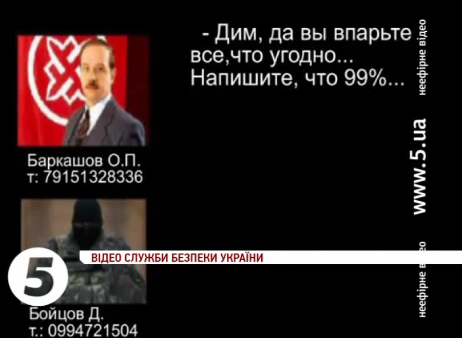 На записі, оприлюдненому відомством, зафіксовано спілкування керівника руху "Русское единство" Олександра Баркашова з лідером незареєстрованої організації "Православний Донбас" Дмитром Бойцовим. У ній останній просить підтримки російських військових для успішного проведення так званого "референдуму" 11 травня.