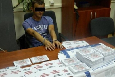 "З метою поширення сепаратистських настроїв в Україні, "Г" організував виготовлення агітаційних листівок підривної спрямованості, які планував розповсюджувати у м. Києві. У вказаних друкованих матеріалах містились заклики від імені т.зв. "Київської республіки" вступати до лав терористичних організацій та чинити спротив чинній владі. Інші листівки, в яких йшлося про "криваві гроші" та "фашизм", планувалось розклеювати на банкоматах м.Києва", - повідомляють в СБУ.