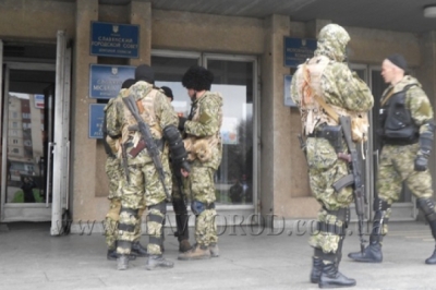 "Згідно з інформацією, що надходить до нас, на околиці міста триває бій, чути постріли і вибухи. Як повідомляють наші активісти, в напрямку міста рухаються БТРи", - сказав чоловік, який назвався Миколою, повідомивши, що він є координатором "міських сил самооборони".