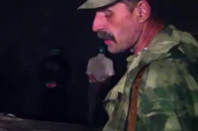 Gorlovka.ua. У кінці відео за його наказом люди в масках стріляють по двох чоловіках у цивільному і з пакетами на головах, що стояли біля стіни – ті падають. Чи є це відео достовірним, або це є постановка - наразі невідомо.