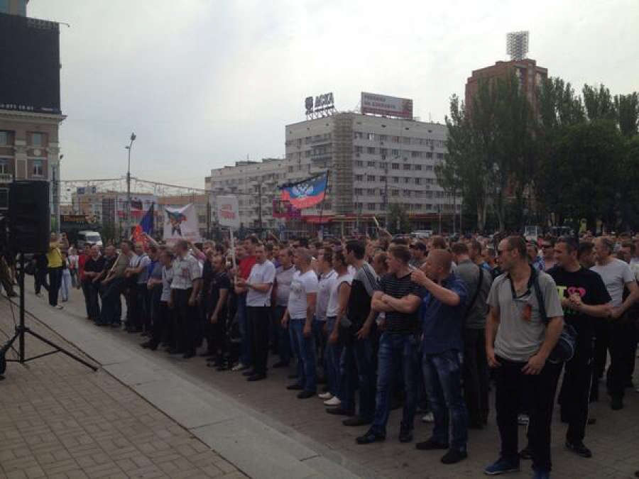 "Фашистська хунта сьогодні захопила владу в країні, тому перед всіма шахтарями є завдання перемогти фашизм на землі Донбасу", - заявив один з виступаючих, імя якого не було названо.