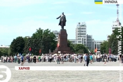 Серед учасників — здебільшого пенсіонери та прихильники Антимайдану. Люди хотіли федералізацію. З російськими триколорами, прапорами радянського союзу і георгіївськими стрічками мітингарі вже кажуть, що вони проти президента... котрого Україна ще не обрала.