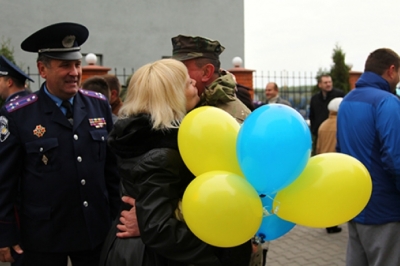 Правоохоронців, що повернулися зі Сходу України додому, зустрічали рідні й близькі, а також командування.