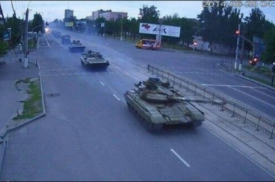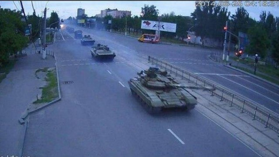 Терористи готують провокацію у Луганську з метою дискредитувати українську армію. На свою військову техніку вони чіпляють українську символіку та прапори, а поблизу вже перебувають російські журналісти.