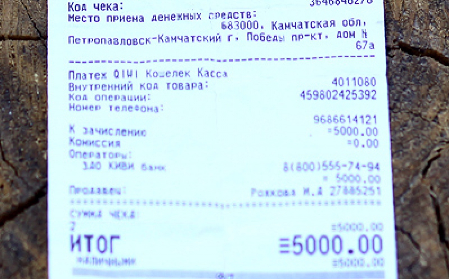 "Крім того, був знайдений касовий чек на отримання грошового переказу на суму 5000 руб. Переказ був отриманий за адресою: РФ, Камчатська обл., м. Петропавловськ-Камчатский", - додали у МВС.