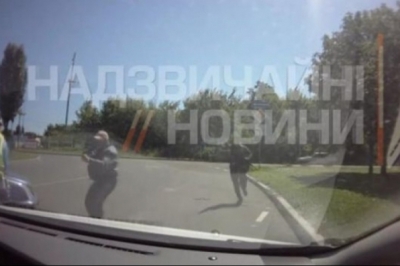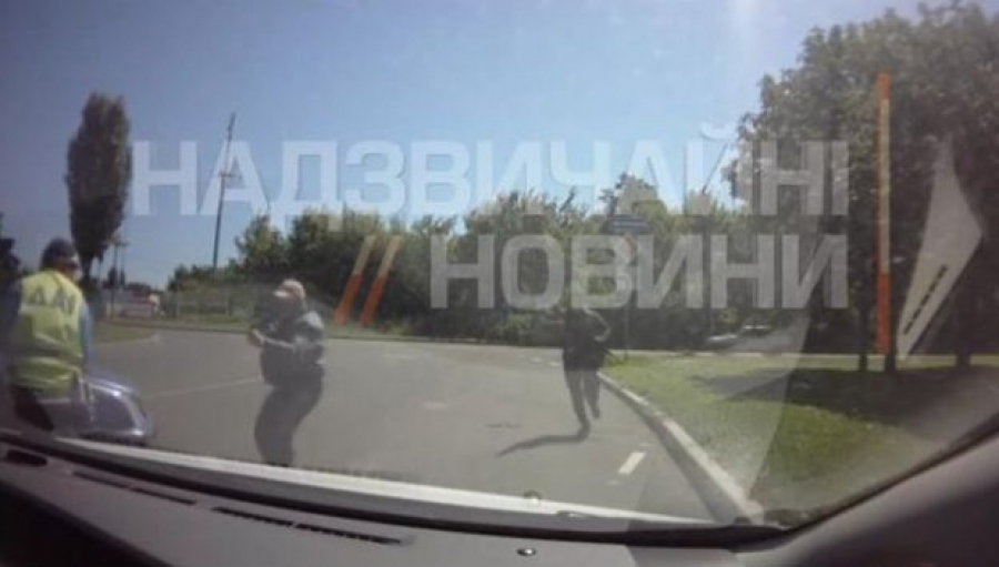 На відео видно, як двоє невідомих озброєних людей впритул підбігли до патрулю ДАІ, після чого відкрили вогонь.