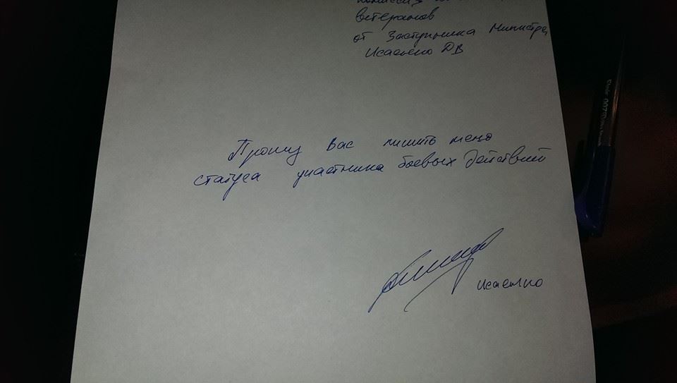 "Після запитань від нардепів де і як він воював Ісаєнко легко відмовився від статусу", - зазначив Береза.