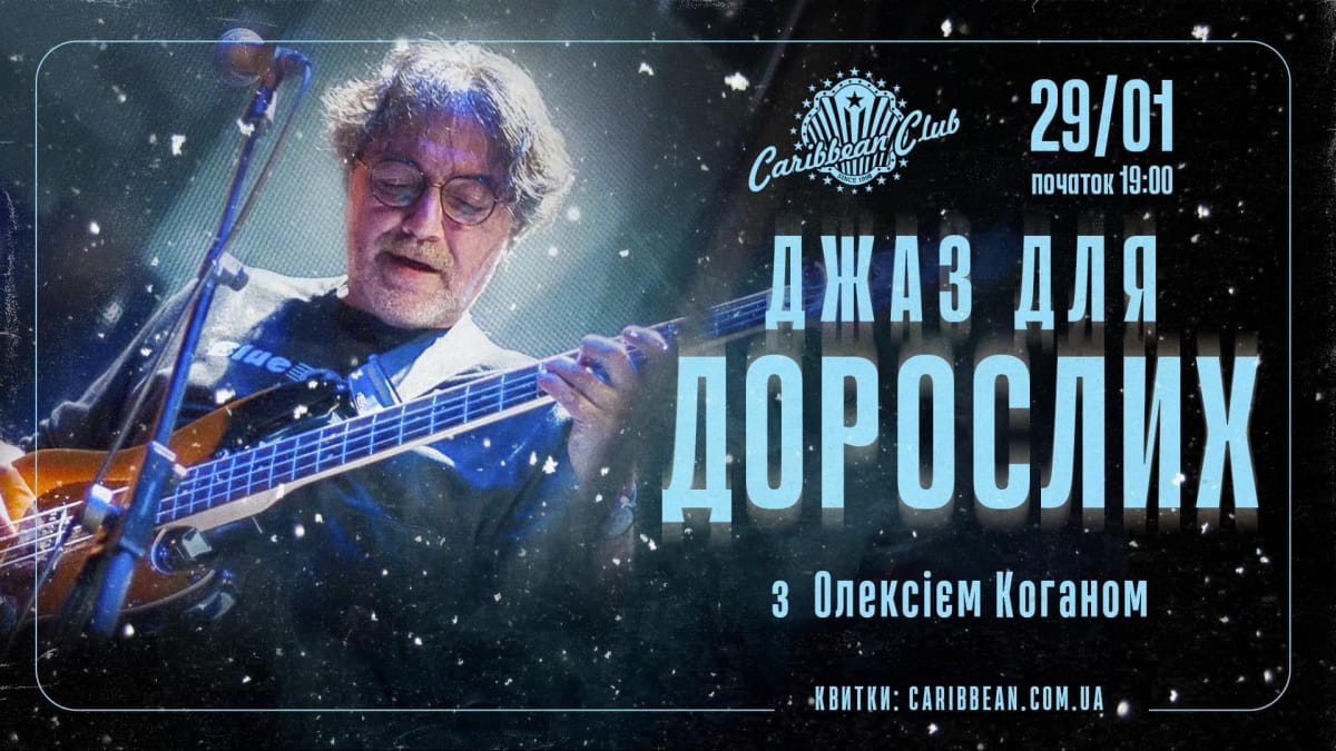 29 січня Caribbean Club запрошує на "Джаз для дорослих" з Олексієм Коганом – вечір, де жива музика поєднується з історіями та розмовою про джаз.