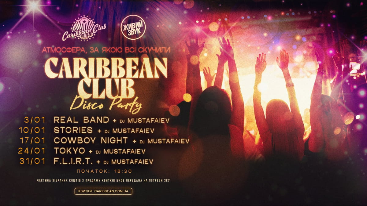 У січні клуб традиційно запрошує на Caribbean Disco Party – серію вибухових вечірок із кавер-гуртами, улюбленими хітами й танцями до пізнього вечора.