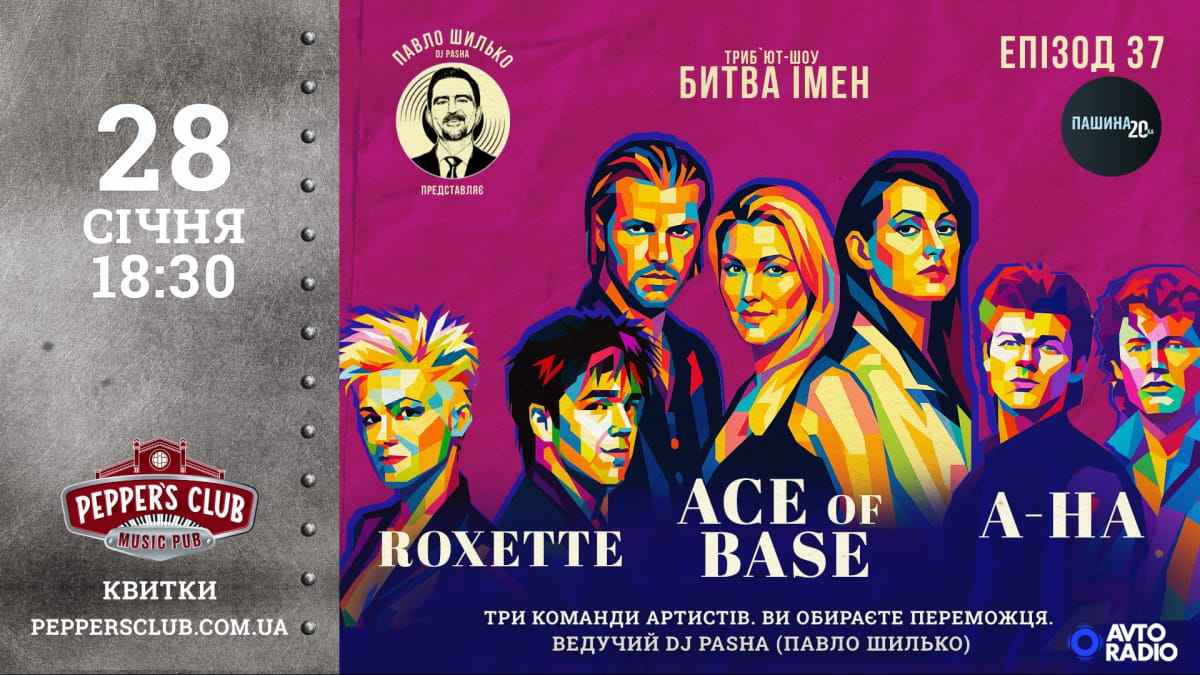 Кінець січня в Pepper's Club – час для гучних хітів і музичних протистоянь. 28 січня тут відбудеться "Пашина 20. Битва імен" – концертний формат хіт-параду від шоумена Павла Шилька (DJ Паша), у якому на одній сцені зійдуться Roxette, Ace of Base й a-ha.