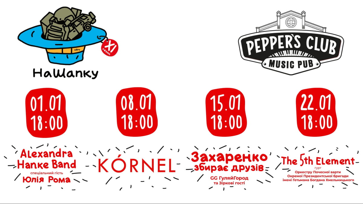 У січні Pepper’s Club продовжує проєкт #НаШапку – серію благодійних концертів із вільним входом на підтримку фонду "СВОЇ", який збирає кошти на кісткові імпланти для поранених українських захисників.