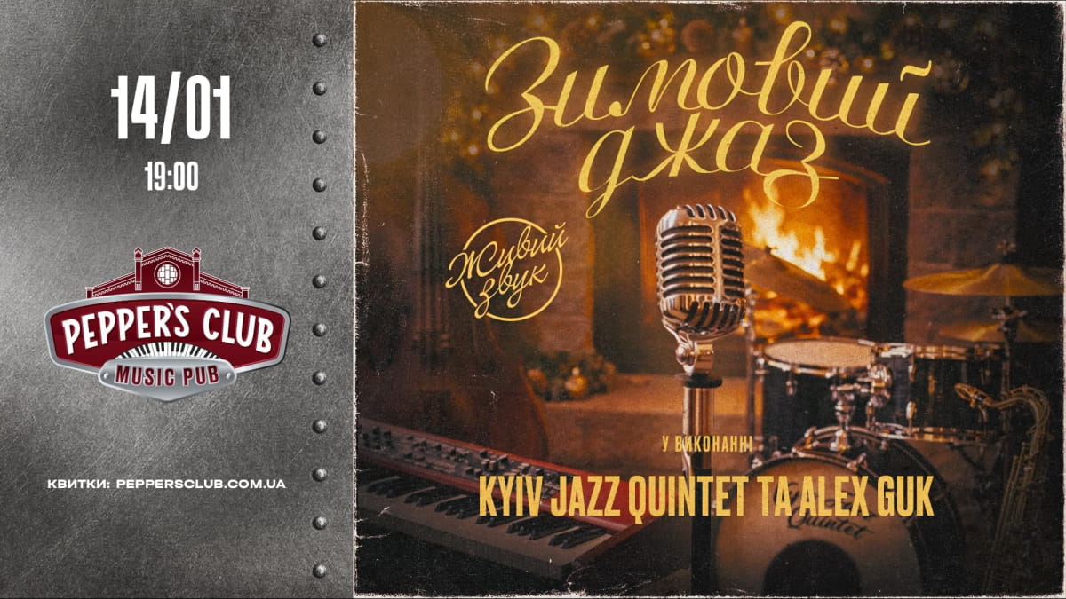 Середина січня – час для камерних вечорів і живого джазу. 14 січня в Pepper's Club відбудеться програма "Зимовий джаз" у виконанні Kyiv Jazz Quintet за участі вокаліста Олександра Гука.