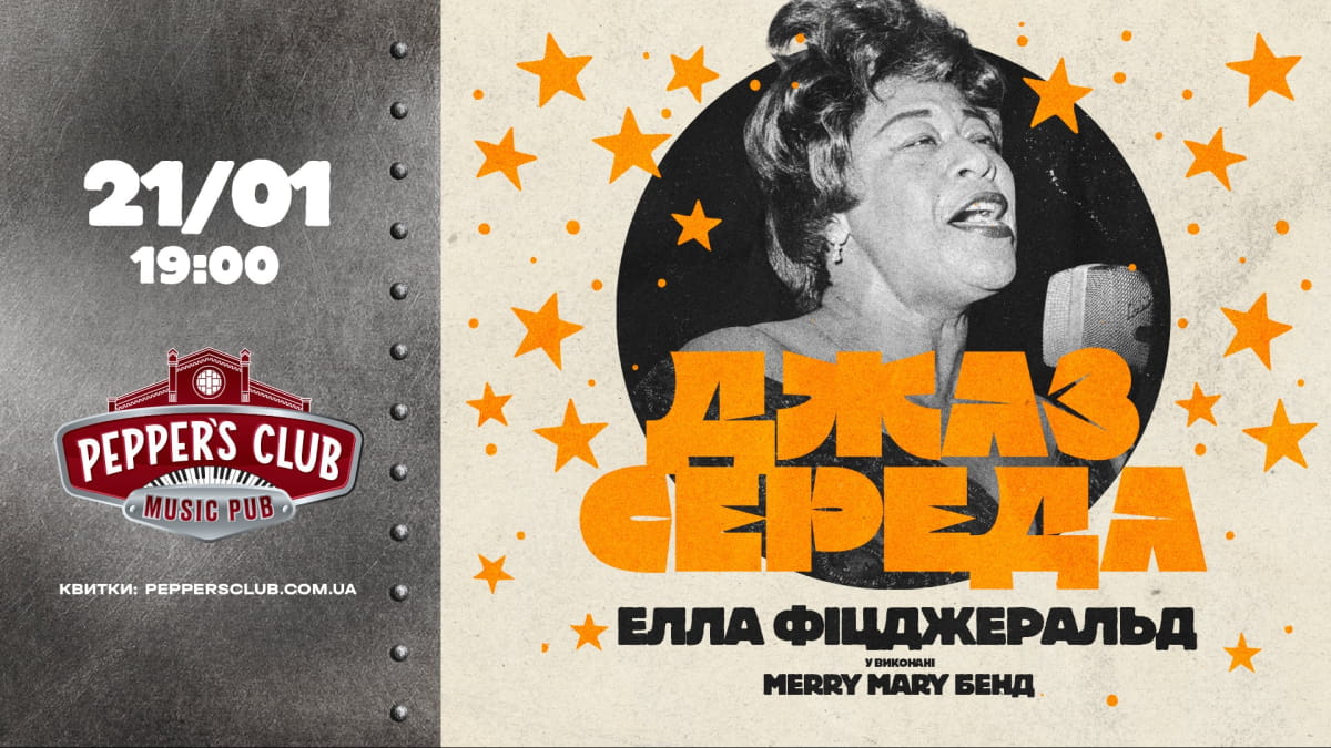 21 січня клуб запрошує на джазовий вечір, присвячений музиці Елли Фіцджеральд, у виконанні гурту Merry Mary. У програмі – знакові композиції легендарної співачки, зокрема Summertime, Dream a Little Dream of Me та Cheek to Cheek.