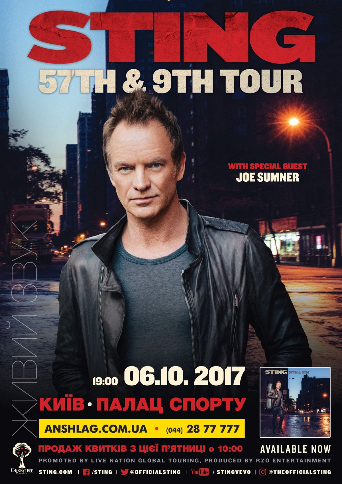Після аншлагових концертів Європою, Північною та Південною Америками Sting's 57th & 9th World Tour бере штурмом увесь світ – із захопленими відгуками шанувальників і критиків. Гітарний рок тур продовжиться восени анонсованими шоу в Україні, Австрії, Болгарії, Росії, Литві, Польщі, Угорщині і Македонії.