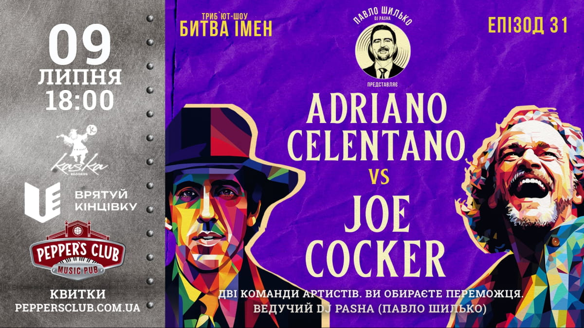 Музичне протистояння творчості двох легенд – Джо Кокера та Адріано Челентано – у форматі живого батлу від Павла Шилька (DJ Pasha). Дві команди українських артистів виконають найвідоміші хіти з репертуарів культових виконавців, а вирішальне слово – за глядачами, які голосують за переможця вечора.