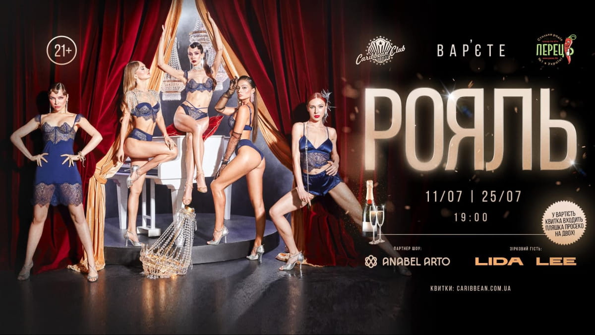 Вар'єте "Рояль" – авторське шоу Caribbean Club, що вже понад п'ять років занурює глядачів у світ спокуси, вишуканості та візуального задоволення. У вартість квитка входить перегляд шоу та пляшка ігристого або вина на двох.