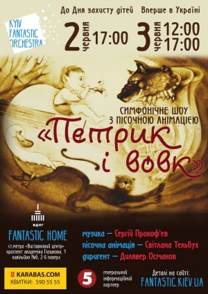 Нічого кращого для знайомства малюків з оркестром людство ще не вигадало. Втім, Kyiv Fantastic Orchestra разом зі Світланою Тельбух – учасницею шоу "Україна має талант", America's Got Talent, полуфіналісткою Spain's Got Talent та засновницею найбільшої в Україні школи пісочної анімації Art-you – вигадали дещо інше. Вперше в Україні буде представлена версія "Петрика і вовка" з пісочною анімацією, яка буде здійснюватися наживо під час гри музикантів. Це надзвичайно захопливе видовище, яке гармонізуюче та заспокійливо діє на глядача.