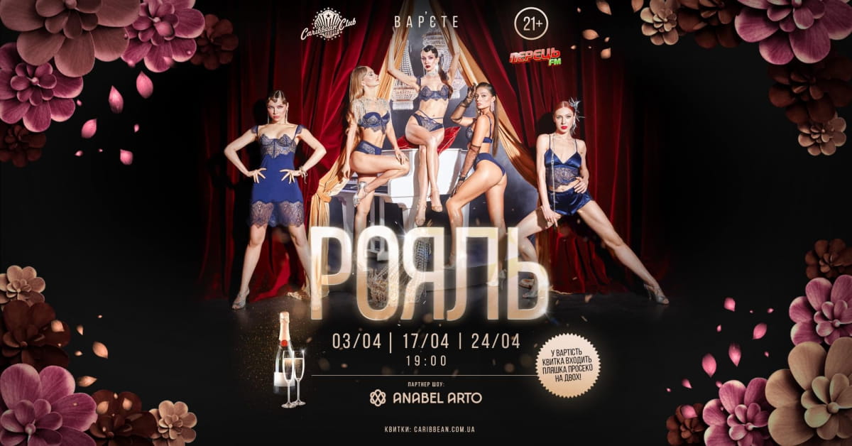 У квітні в Caribbean Club тричі покажуть вар'єте "Рояль" – шоу для дорослої аудиторії, створене в естетиці класичного кабаре. Формат поєднує вокальні номери, хореографію та музичні перформанси, вибудувані як цілісна сценічна історія. Шоу "Рояль" презентували понад п'ять років тому. За цей час проєкт неодноразово збирав повні зали і сформував навколо себе сталу аудиторію.