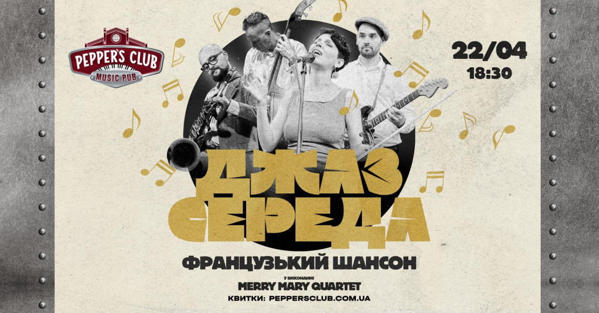 Merry Mary Quartet підготував програму на перетині французького шансону, свінгу, мануш-джазу та джазової класики. У ній – знайомі мелодії в нових аранжуваннях і камерному звучанні.