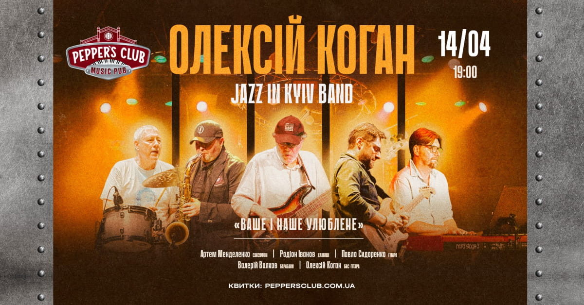 14 квітня в Pepper's Club – джазовий концерт за участі Олексія Когана та Jazz in Kyiv Band з програмою "Ваше і Наше улюблене". У програмі – авторська добірка Jazz in Kyiv Band з ретельно підібраних джазових і блюзових композицій у камерному форматі.