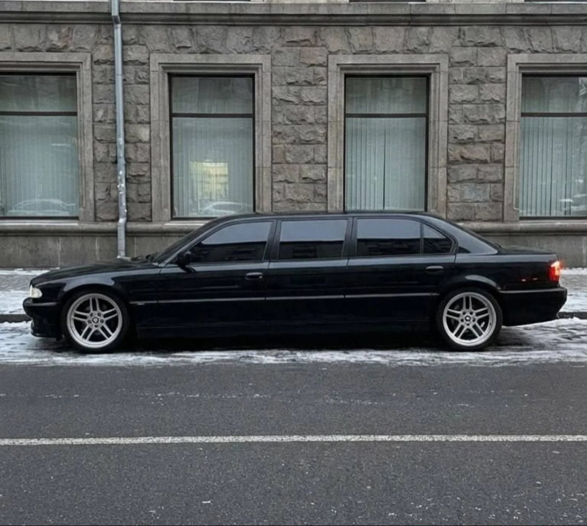 Автомобіль, зареєстрований у столиці, пройшов серйозну модернізацію. Представницький BMW 7 Series подовжили за рахунок додаткової вставки з вікном між передніми та задніми дверима. Це дозволило значно збільшити внутрішній простір та реалізувати сміливі інженерні рішення.