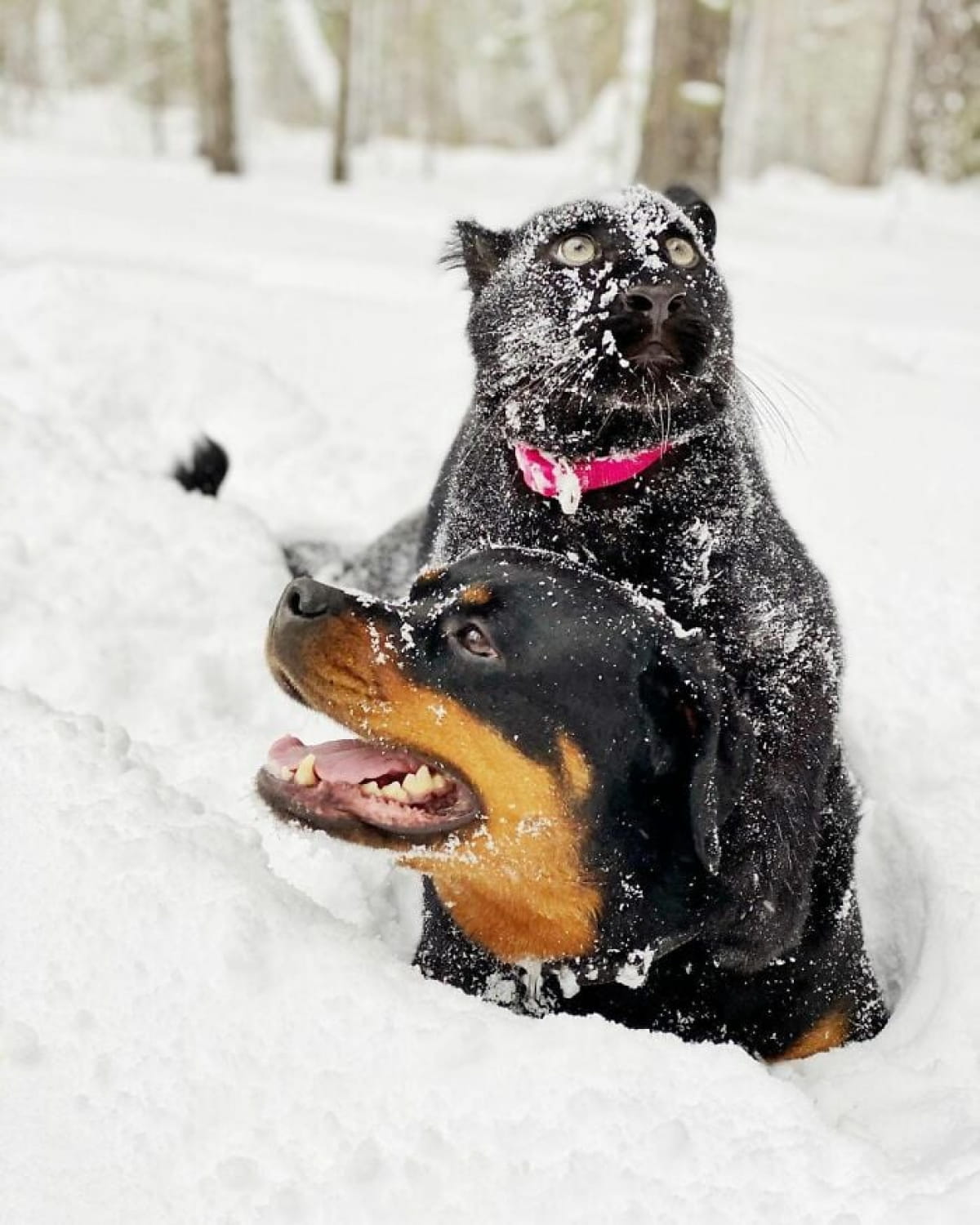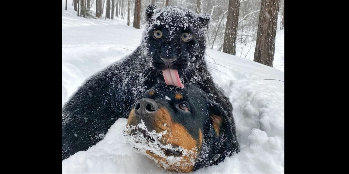 Пантера, яку назвали Луна, має досить незвичну долю. На відміну від своїх родичів, вона проживає не у джунглях або зоопарку, а з ротвейлером та жінкою у звичайному будинку.