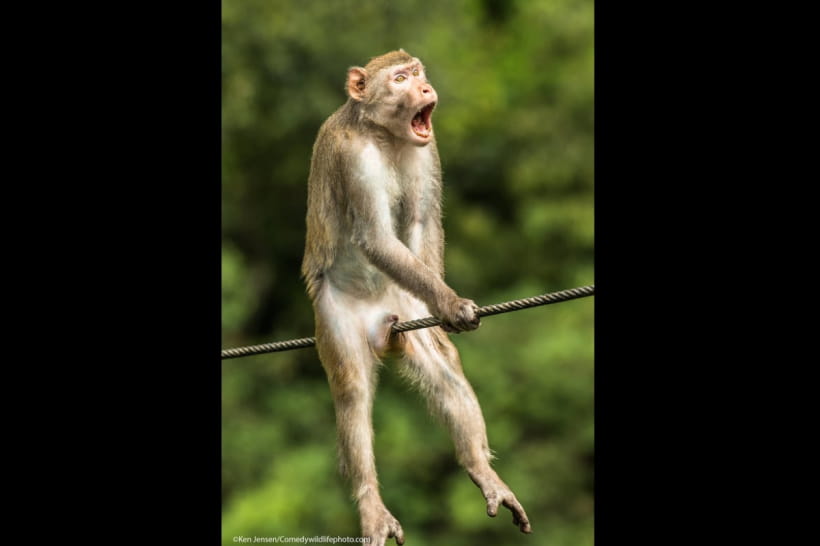 Проведено чергову премію Comedy Wildlife Photo Awards, де цього року переміг знімок зі самцем мавпи, який курйозно сидить на тросі. Окрім цього, у добірці представлені інші кумедні фото.