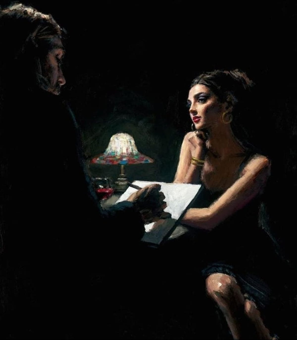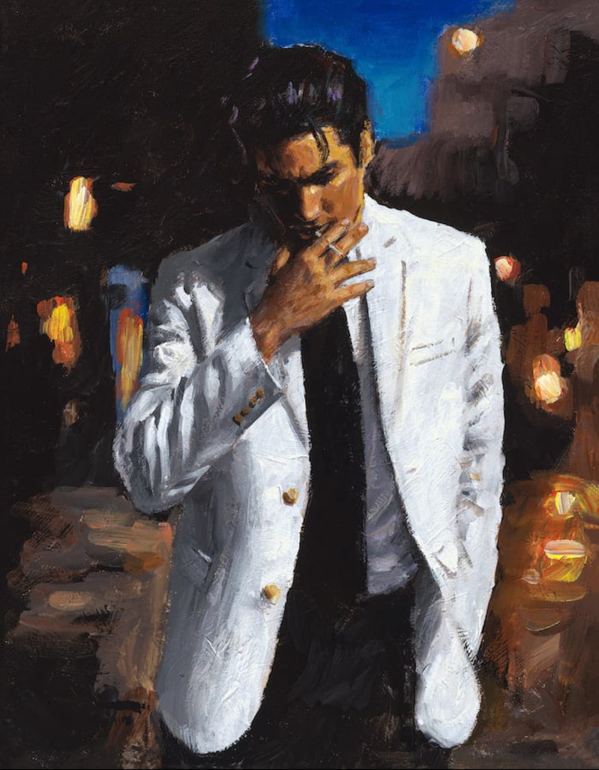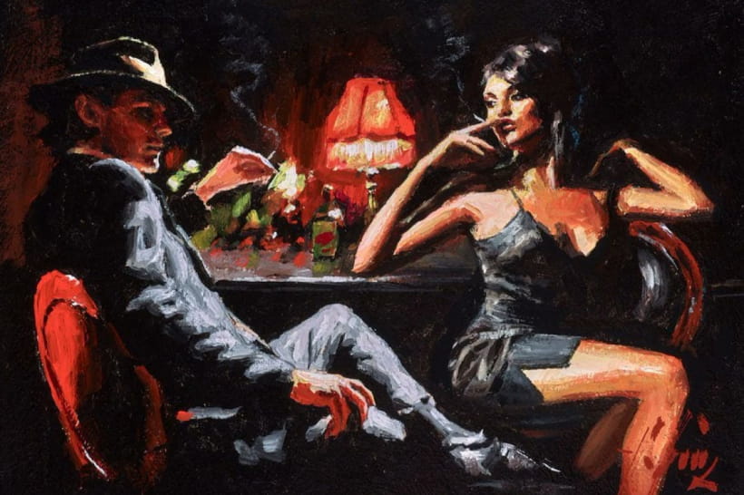 Аргентинський художник Фабіан Перес перетворює полотно на атмосферу: його твори – це дим сигар, напівтіні в барі, ритм танго й мовчазна драма. У кожній роботі – відлуння емоцій і тонкий баланс між світлом, ніччю та внутрішнім вогнем.