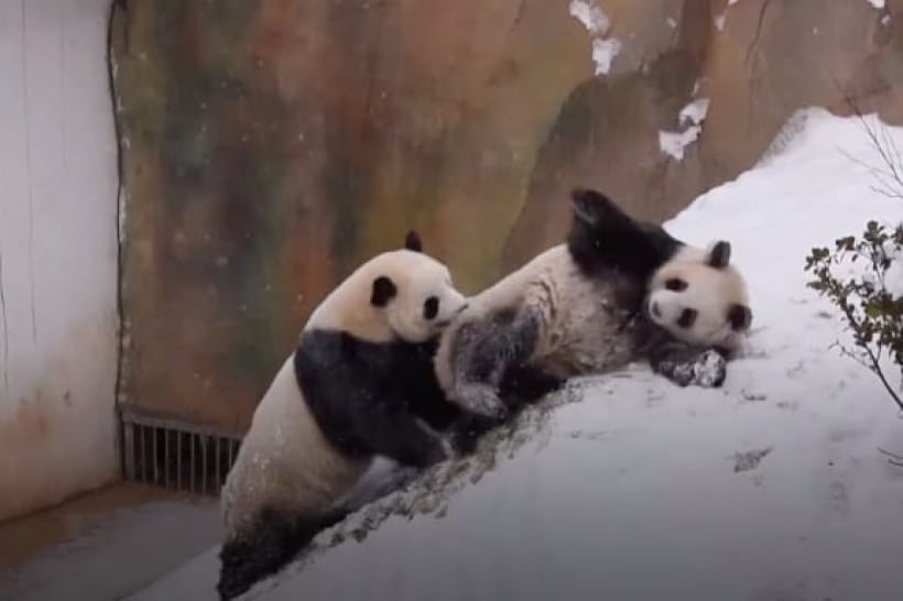 За словами наглядачів звіринця, чотирирічні панди Ци Гуо та Юань Ман завжди так бурхливо реагують на сніг.