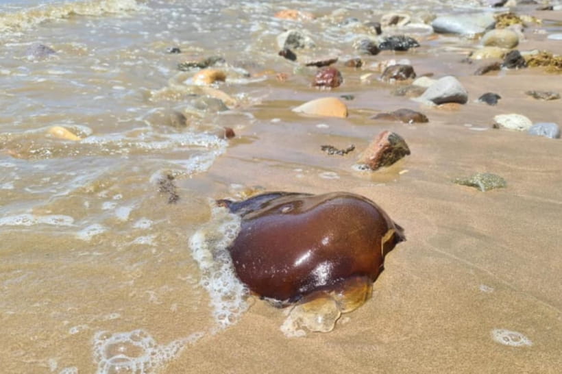 Це сталося у східній частині Квінсленду (Австралія) на узбережжі міста Йеппун. На фотографії помітно коричневе желеподібне створіння, що схоже на печінку.