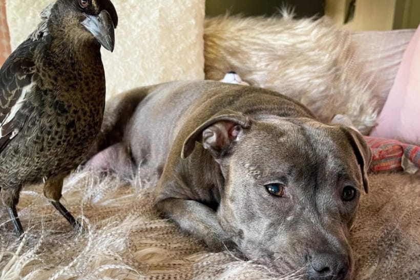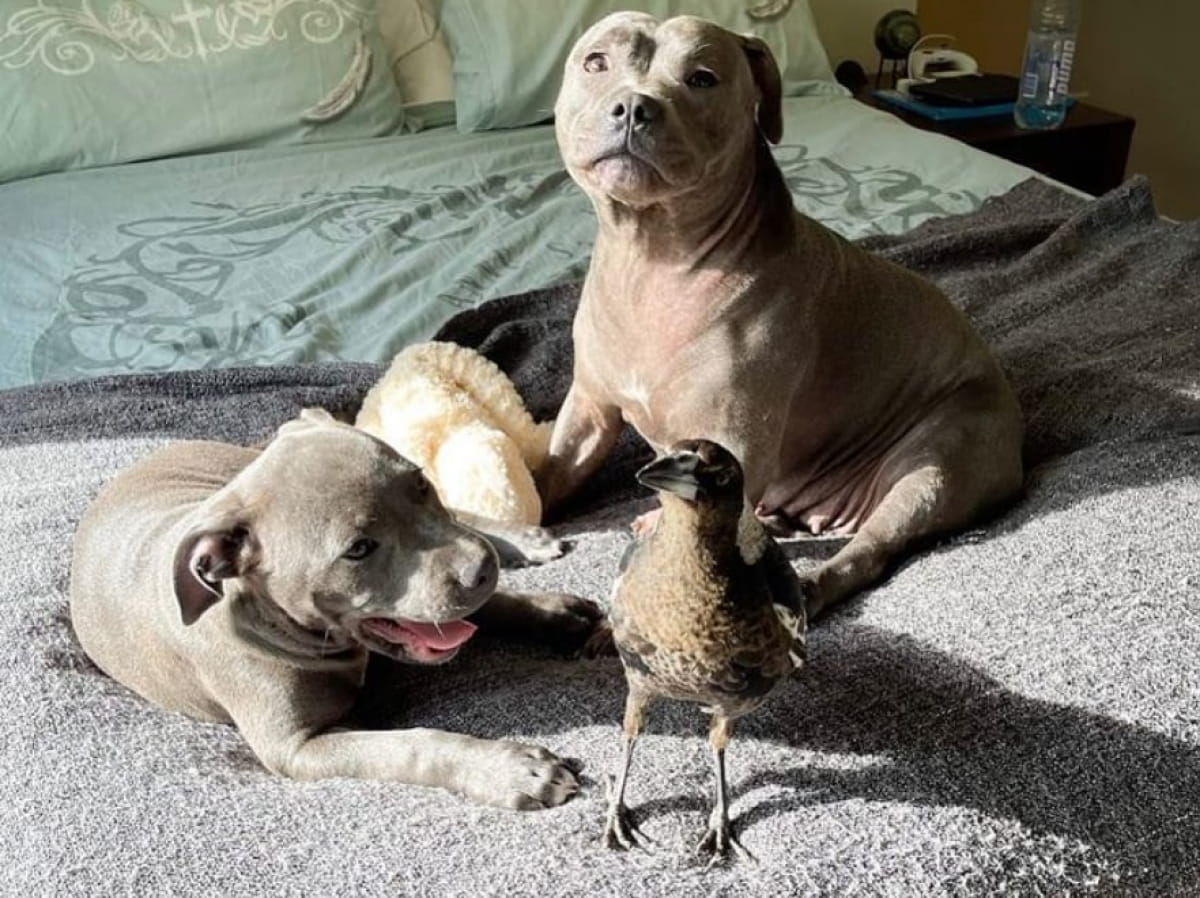 Так, одного разу пташка сама підійшла до Пеггі та вирішила лягти поблизу. Окрім цього, у сім'ї мешкає ще один пітбуль.