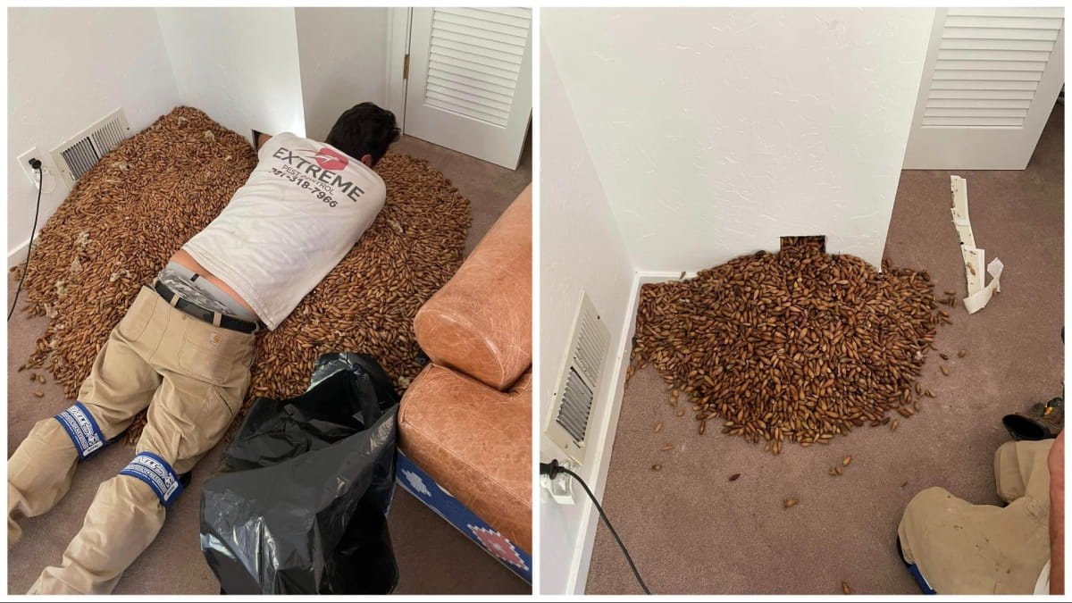 Nick Castro, a pest control technician, made a nutty discovery when he cut into the wall of a California home on Dec. 15, 2022. https://t.co/uWXCktVb08 pic.twitter.com/sbNCIvKHvN