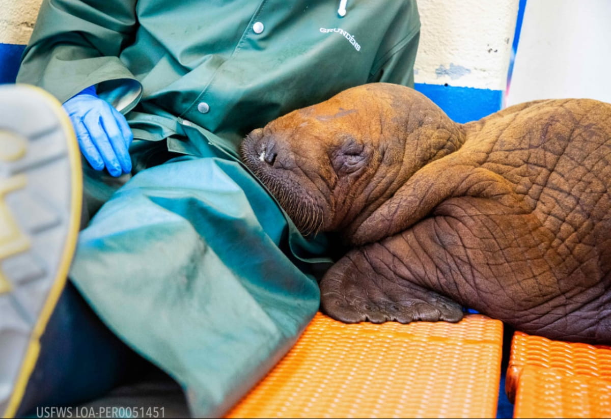 На Алясці за 6,5 км від моря знайшли самотнє дитинча рідкісного моржа, яке рятувальники забрали для догляду і цілодобових обіймів. Про це повідомляє "Дивогляд" із посиланням на Центр морського життя Аляски.