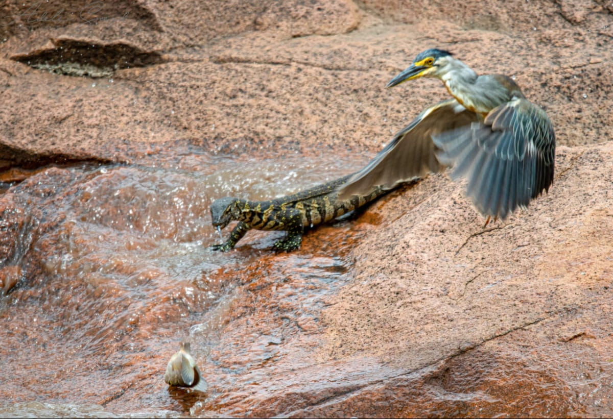 У Національному парку Крюгера (ПАР) люди стали свідками неймовірної сцени за участю риби, птаха та ящірки. Про це повідомляє "Дивогляд" із посиланням на Latest Sightings.