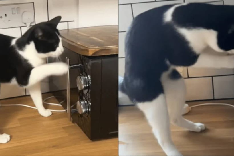 "Ви коли-небудь бачили, як кішка відкриває мікрохвильовку?" – пише авторка відео.