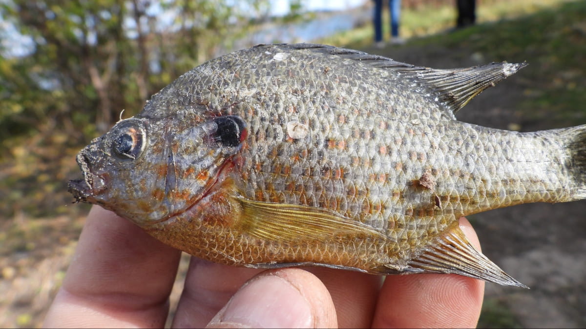 Під час інспекції 19 жовтня на березі скидного каналу водосховища знайшли двох представників цього виду – сонячних окунів (Lepomis auritus). Рибалки повідомляють, що рибу вже фіксували в інших водоймах регіону, зокрема в Дністрі.