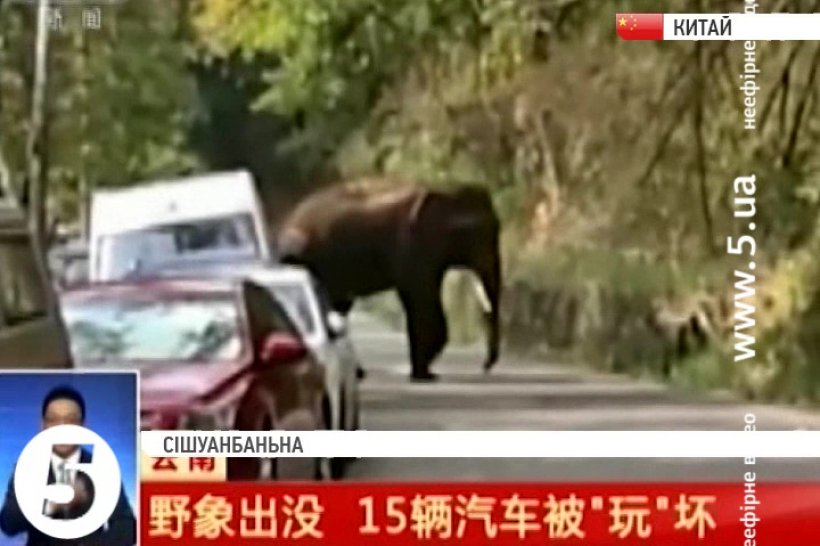 У Китаї слон, розчарований у коханні, пошкодив 15 машин, повідомляє Associated Press.
