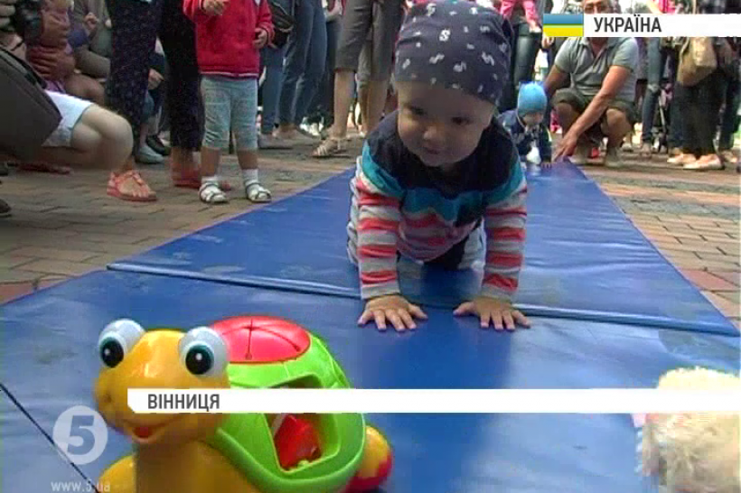 Близько 50 малюків у Вінниці взяли участь у "перегонах в повзунках". Діти мали самостійно проповзти по спеціальній доріжці. Батькам дозволялося тільки підбадьорювати своїх маленьких чемпіонів та приманювати улюбленими іграшками. Одні малюки справлялися з таким завданням за секунди, інші – просто лежали на доріжках або починали гратися.