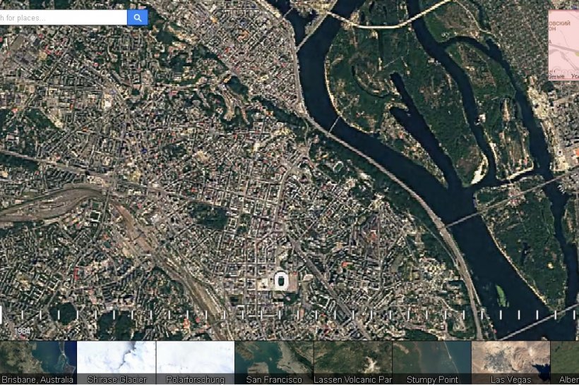 Таким чином, тепер в базі є деталізовані знімки за період з 1984 року по 2016 рік. Для того, щоб побачити таймлапс Києва або іншого місця на Землі, потрібно ввести його назву в пошуковому рядку. Зображення можна масштабувати, а також "переміщатися" по карті вказівником мишки.