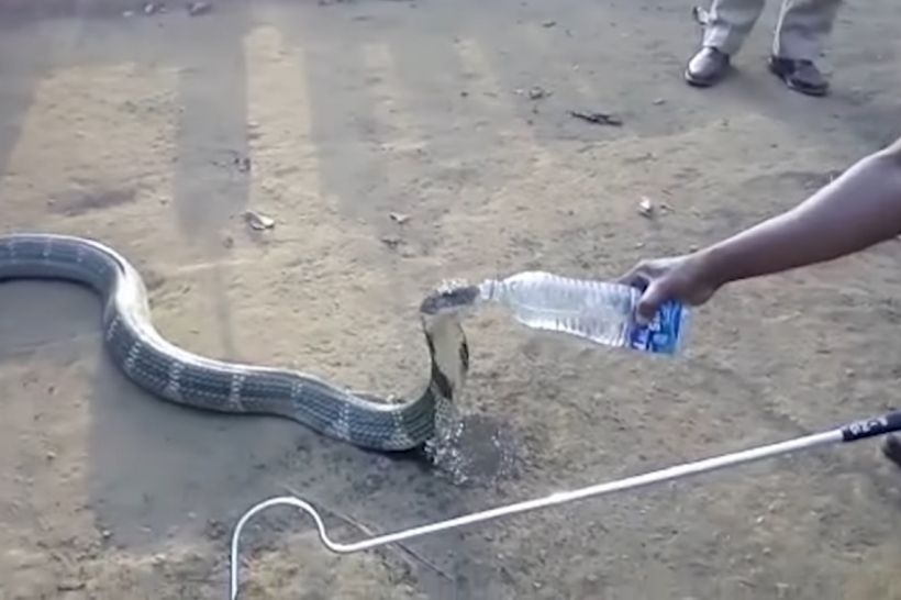Жителі одного індійського села, яке постраждало від посухи, напоїли кобру водою із пластикової пляшки. Про такий прояв доброти повідомляє "ВВС-Україна".