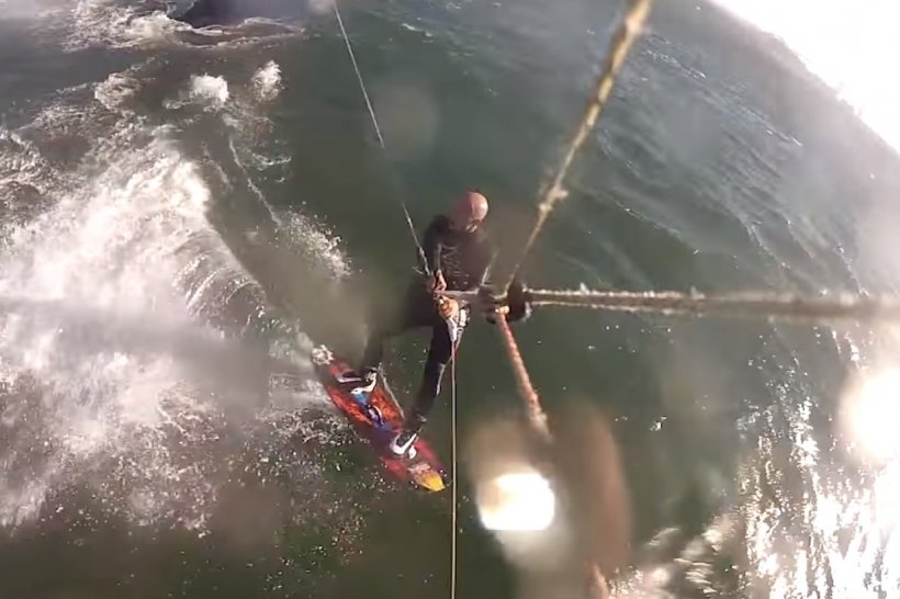 У США один з кайтсерфінгістів випадково натрапив на "живий трамплін" – величезного горбатого кита. Це сталося неподалік одного із пляжів Сан-Франциско.