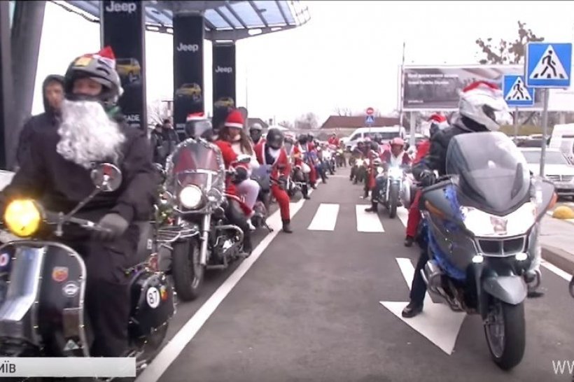 Санта-Клауси на двоколісних оленях прибули до аеропорту "Київ". А вже звідти – рушили мотопробігом вулицями столиці. Це вже 15 раз байкери створюють киянам новорічний настрій, але цьогоріч встановили рекорд – мото-сантами стали близько 200 мотоциклістів. Кого і як вітали в останній день 2017-го – знає Леся Головата.