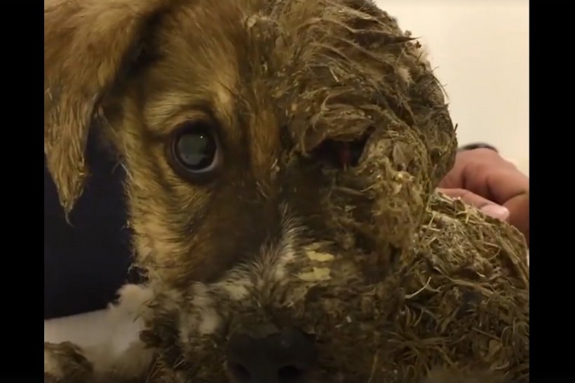 Діти заради розваги облили цуценя на кличку Паскаль клеєм. Його шерсть сильно злиплася і перетворилася на суцільний клубок. Від цього песик не міг ходити і навіть відкрити очі.