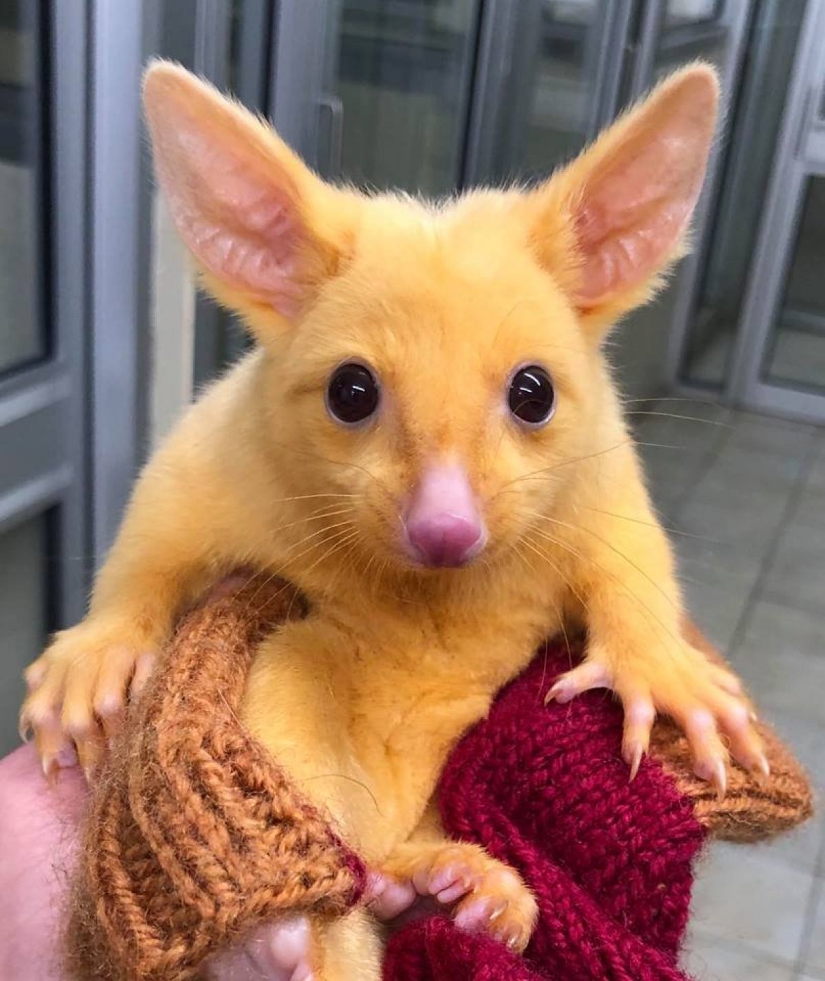 Опосума віднесли до ветклініки, де його оглянув лікар. За його словами, незвичайне забарвлення пояснюється мутацією, спричиненою браком меланіну.