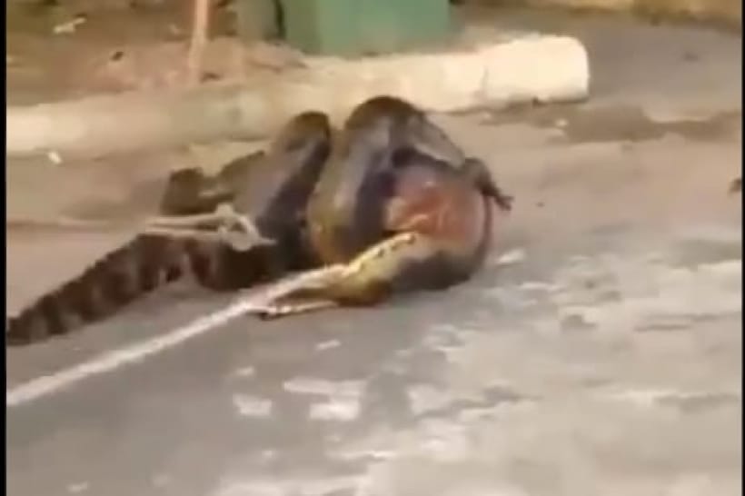 Зрештою рептилій вдалося розтягнути. Та у коментарях під відео глядачі почали висловлювати обурення тим, що люди втрутилися у природний процес і залишили змію голодною.