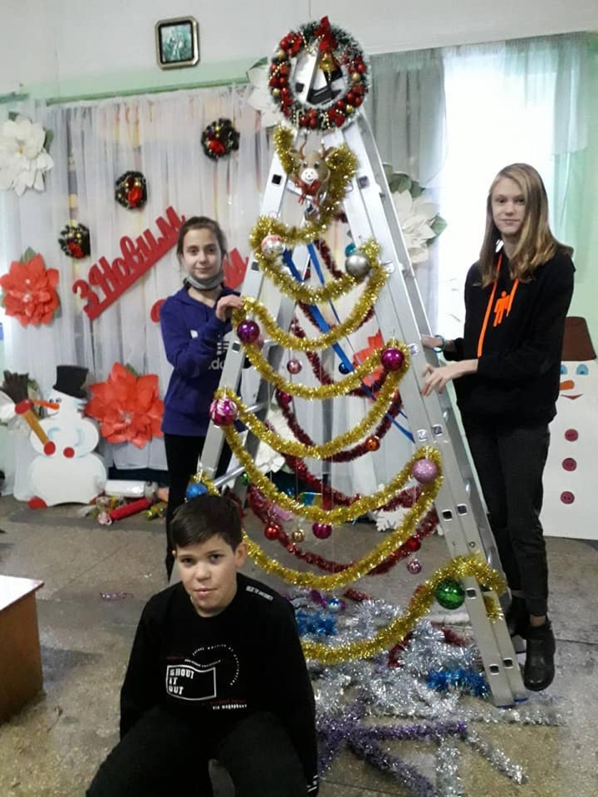 З виразу облич дітей, які прикрашають цю драбину, не дуже зрозуміло, чи в захваті вони від такої ідеї.
