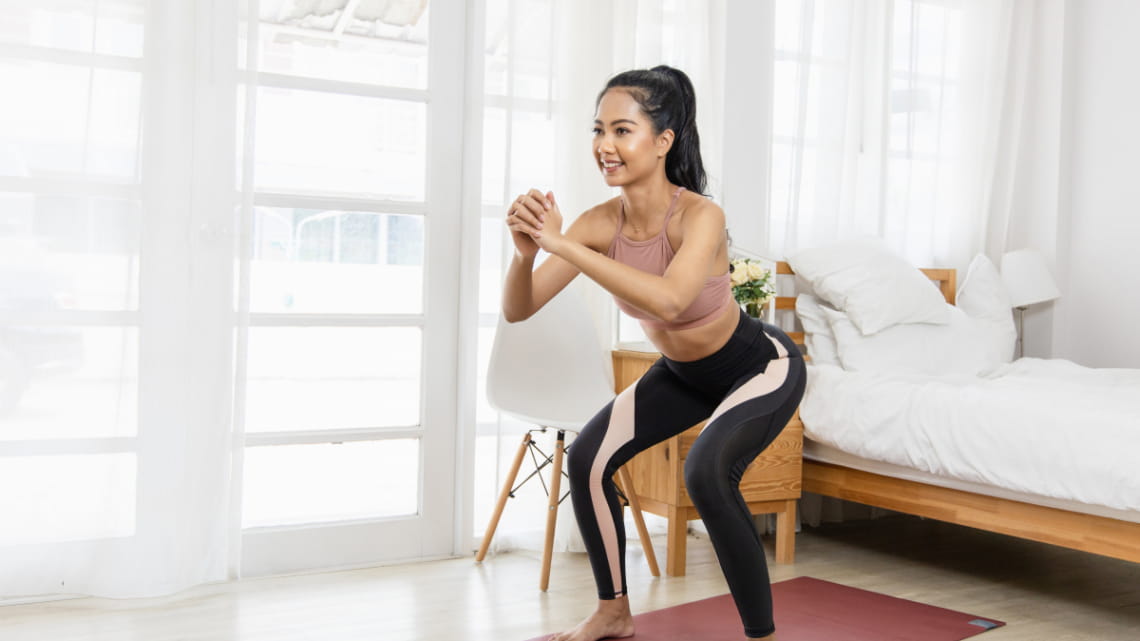 Задля цього, станьте прямо та поставте ноги на ширину плечей. Руки можуть перебувати у різноманітних положеннях: прямо перед собою, в замку за головою, або ж перед грудьми. Під час виконання вправи намагайтеся тримати спину прямою, а таз відводьте максимально назад.