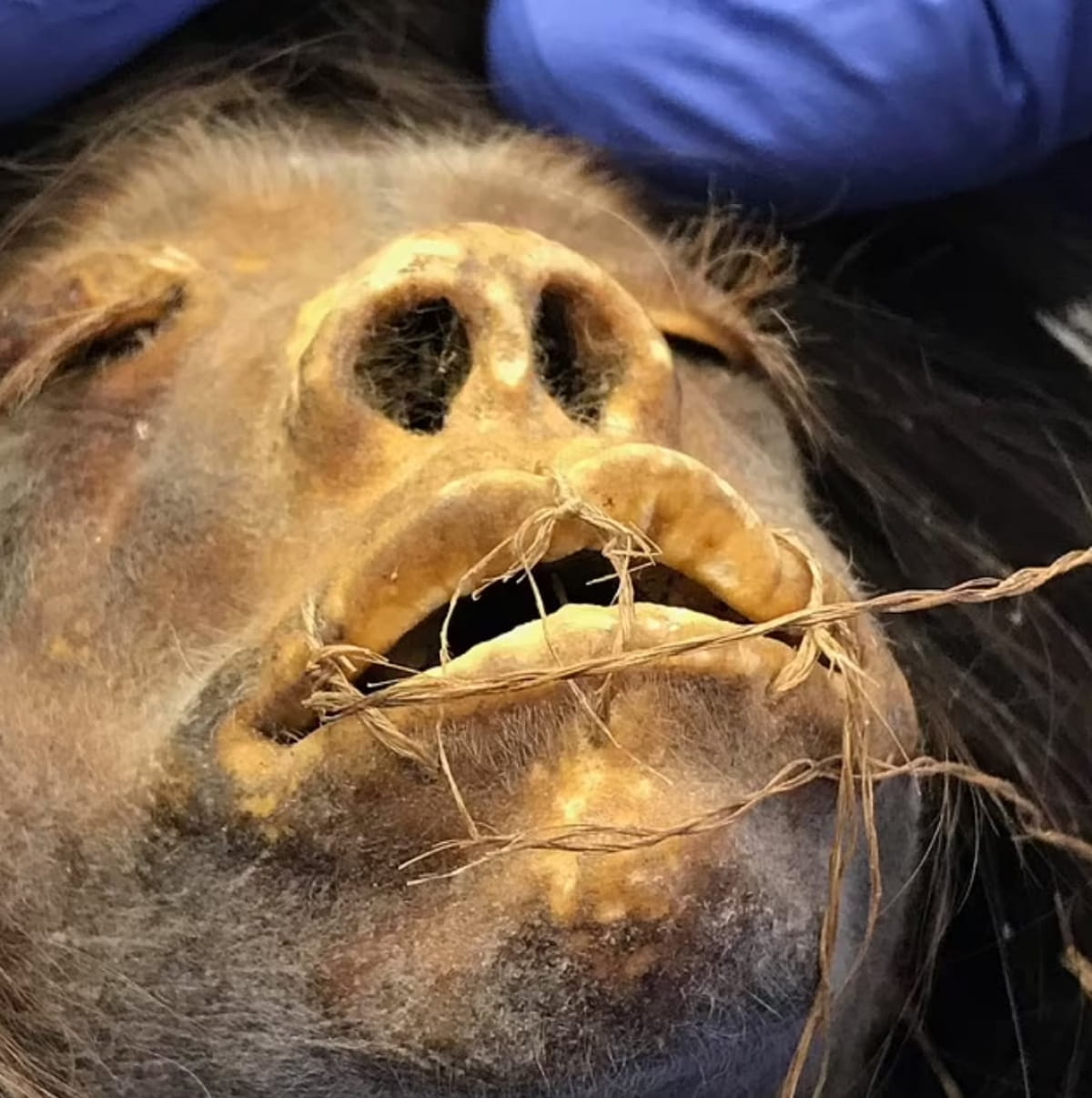 Дослідники стверджують, що ця тсантса розміром з кулак дорослої людини, а також при зшитті її губ використали рослинне волокно, що також вказує її справжність.
