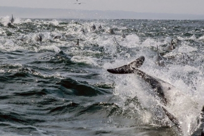 Дельфіни постійно вистрибували із води, а інколи навіть демонстрували свої трюки