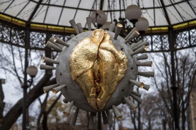 Витвір мистецтва під назвою "Пандемія домашнього насильства" розташувався у Міському саду. Він мав вигляд золотистої кулі, у яку були увіткнені голки. Ймовірно, це була відсилка до пандемії коронавірусу.